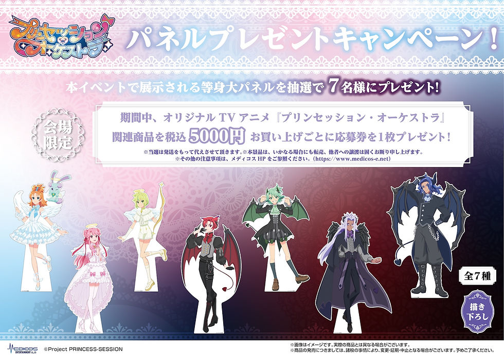 オリジナルTVアニメ『プリンセッション・オーケストラ』POP UP SHOPで展示される描き下ろし等身大パネル(全7種)が抽選で東京・大阪会場合わせて7名様に当たるキャンペーンを実施!